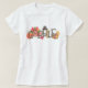Spaß-Erntedank-Shirt! "Verschlingen Sie" geschrieben in einen Hand gezeichneten Entwurf mit den Erntedankbildern, die mit den Buchstaben verflochten werden.