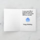 Weiße Grußkarte mit blauem Turbulenzbild auf Front und die Wörter "versetzen nicht!" in Panik Auf dem Innere der Karte ist ein Bild eines blauen Kartenkastens unter dem Text "sich sorgen nicht, sieht zwar es wie ein kleines Geschenk aus, aber es ist größer auf dem Innere als die Außenseite!" Unter dem Bild des blauen Kastens ist der Text "alles Gute zum Geburtstag". Auf der Rückseite der Karte ist ein Bild eines englischen Polizeisturzhelms mit einem blauen Licht auf die Oberseite.