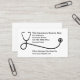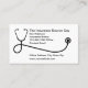 Visitenkarten zum Thema Krankenversicherung mit moderner Stethoskop-Grafik, die die Gesundheitsbranche in einer leicht bearbeitbaren Vorlage für einen Versicherer oder Agent darstellt.