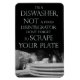 Ein einfaches, auffälliges Design, das Ihren Haushalt an den richtigen Geschirrspüler erinnert. Text lautet: Ich bin Geschirrspüler, kein Essensgeschirrspüler; Vergiss nicht, deinen Teller zu kratzen.