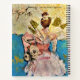 Versprechen des Friedens gemischte Medien Kunst Zeitschrift. Lebhaftes Gemälde eines Ballerina "Engels" mit vergoldeten Flügeln. Gold und Blau.