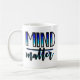 Kümmern Sie sich über Angelegenheits-Tasse mit Beschriftung in einer schwarzen und blauen Steigung.