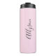 Vertical benennen von schwarzem Skript, blassrosa Thermosbecher