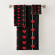 Vertical Red Heart Columns on Black Badhandtuch Set