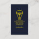 Auf der Rückseite, in einem ähnlichen blauen Deckel, ist oben ein gelbes Glühbirnen-Logo, gefolgt von den Kontaktdetails und zwei Slogan-Optionen, um Ihre Firma zu werben.