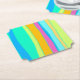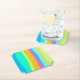 Dieser Untersetzer ist in fröhlichen und lebhaften Farben wie Fuchsia, Orange, Grün, Blau und Türkis gehalten, die in senkrechten, unregelmäßigen Linien mit unterschiedlicher Dicke angeordnet sind.