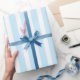 Vertikale blaue und weiße Pastellstreifen Geschenkpapier