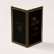 Vertikal geklappte Visitenkarte im Buchstil in schwarz mit goldenem Rand.