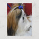 Weiß und braun shih-tzu Hund mit einem Bogen im Fell.