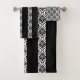 Vertikale schwarz-weiße Streifen und Damast Badhandtuch Set