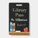 Eine vertikale Bibliothek mit einer Tafel mit Imitaten, Büchern und einem Apfel. Es kann leicht mit dem Passtitel , dem Namen und der Zimmernummer des Lehrers (oder dem Schulnamen) personalisiert werden. Dieser Pass ist auch in der horizontalen Ausrichtung verfügbar. © ArianeC Illustrationen