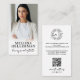 Beruflicher Foto QR Code Company Ihre Logo Vertikale Visitenkarte. Diese elegante und einfache Visitenkarte eignet sich ideal für Firmenmarken, kleine Unternehmen, Berater, Freiberufler oder alle beruflichen, die eine moderne, elegante Ästhetik suchen. Die Vorderseite zeigt Ihr Foto, Logo, Name, Titel oder Firmenname über einen weißen Farbverlauf am unteren Ende, mit schwarzen Schriftart für einen sauberen, feinen Kontrast. Auf der Rückseite ist ein solider, weißer Hintergrund mit schwarzen Schriftart und Details, einschließlich Ihrer Kontaktinformationen, QR-Code und optionalen Social Media Icons, hervorgehoben. Typografie ist eine raffinierte Mischung aus handgeschriebener Skriptkalligraphie und einem klassischen SerifenSchriftart, die dem Design ein berufliches und dennoch stilvolles Aussehen verleiht. Vollständig anpassbar, können Sie Schriftart, Farben und Layout anpassen, um Ihre Marke Anzug.