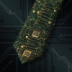 Diese einzigartige und auffallende Krawatte zeigt ein schlankes Leiterplattendesign mit komplizierten goldenen Pfaden, Chips und Komponenten, die in einem vertikalen Layout auf einem reichen dunkelgrünen Hintergrund angeordnet sind. Das detaillierte Technikmuster hat eine moderne, intelligente und leicht geek-chic Atmosphäre, die auffällt, während sie dennoch elegant bleibt. Perfekt für Ingenieure, Programmierer, Technikprofis, STEM-Hochzeiten oder jeden, der seine Liebe zur Technologie auf stilvolle Weise zeigen möchte. Das tiefe Grün mit metallischen goldenen Details passt schön zu schwarzen, navyblauen, grauen oder weißen Anzügen. Ob Sie zu einer Konferenz gehen, an einer technikorientierten Hochzeit teilnehmen oder einfach nur einen intelligenten Gesprächsstarter wollen, diese Leiterplatten-Krawatte bringt Persönlichkeit, Selbstvertrauen und modernen Flair.