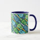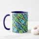 Ukuleles in oinblau und grün vor dunkelblauem Hintergrund ist ein einzigartiges musikalisches Instrumentendesign für Streichmusiker, Lehrer und Studenten.