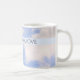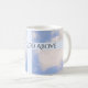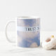 Diese Tasse zeigt ein Foto des Himmels, zusammen mit einem hellblauen Kreuz mit der inspirierenden Botschaft, Gott zu vertrauen. Es ist ein nettes Geschenk für Ostern oder zu jeder Zeit ist Ermutigung erforderlich.