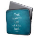 Vertrauen Sie auf den Herrn mit all Ihrem Herz Bible Verse Laptop Ärmel. Aqua Hintergrund mit weißer Schriftart Typografie, mit der inspirierenden, ermutigenden Schrift von Sprichwörtern.