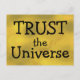 Dies ist eine wunderschöne "goldene" Farbpostkarte mit dem Sprichwort 'TRUST das Universum', geschrieben in groben schwarzen Buchstaben! Schön, einen an alle in der Familie zu schicken!
