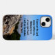 Dieses landschaftliche Christliche Telefongehäuse zeigt ein wunderschönes Landschaftsbild-Foto, das von einem felsigen Berg hinunter zur darunter liegenden Insel und zum blauen Meer und zum Himmel jenseits der anpassbaren Worte des Bibelsversums von Psalm 16:8 schaut. "Ich habe den Herrn immer vor mir Set. Weil er an meiner rechten Hand ist, werde ich nicht erschüttert werden."