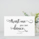 Modernes "Trust me you can dance" Zeichen für Ihren trendigen Hochzeitsempfang oder Ihr Party in Schwarz/Weiß! Bitte scrollen Sie nach unten, um passende Produkte anzuzeigen, die Sie genießen können.