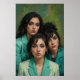 Ein elegantes Portrait von drei Frauen in aquamarinen Blazer, das Schönheit, Kraft und Einheit mit kühlen Ausdrücken und reichhaltigen Texturen feiert.