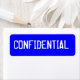 Ein blaues Etikett mit weißem Text, das CONFIDENTIAL liest (oder benutzen Sie den Edit Button, um Ihre eigene Sache zu sagen!)