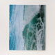 Eine perfekte Welle, die auf dem Strand sich kräuselt.