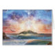 Meerblickmalerei mit Insel, springenden Delphinen und Vögeln mit leuchtendem Himmel. Durch Daniel B. Holeman.