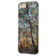 Impressionistische pointilism Malerei eines Sonnenaufgangs gesehen durch Bäume in einem Wald.