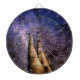 Dieses Design zeigt ein schönes Bild von zwei hohen Bäumen, die sich in den Himmel erheben, umgeben von anderen Bäumen in einem Wald. Die Szene ist das Set in der Nacht, wenn alles aussieht besonders magisch und bezaubernd. Es gibt eine Vogelherde, die über der Luft liegt. Der Himmel besteht aus einer wunderschönen Mischung aus lila und blau; er ist mit hellen weißen Sternen übersät.