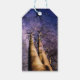 Dieses Design zeigt ein schönes Bild von zwei hohen Bäumen, die sich in den Himmel erheben, umgeben von anderen Bäumen in einem Wald. Die Szene ist das Set in der Nacht, wenn alles aussieht besonders magisch und bezaubernd. Es gibt eine Vogelherde, die über der Luft liegt. Der Himmel besteht aus einer wunderschönen Mischung aus lila und blau; er ist mit hellen weißen Sternen übersät.