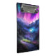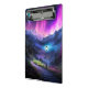 Machen Sie einen Spaziergang durch diesen bezaubernden Wald in einer nebeligen Nacht unter den glitzernden, stürmenden Sternen und der tanzenden Aurora Borealis, auch bekannt als die Nordlichter. Die Hügel sind durch das Glühen von Halos, die unter ihnen von den alten Öllampen gegossen werden, die die Wege abgrenzen, die sich durch die sanften Hügel ziehen. Das endlose Glühen aus dem Himmel und die Öllampen reißen sich reflektiv auf den Wegen ab, die noch nass sind vom morgendlichen Regen.