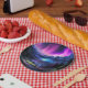Machen Sie einen Spaziergang durch diesen bezaubernden Wald in einer nebeligen Nacht unter den glitzernden, stürmenden Sternen und der tanzenden Aurora Borealis, auch bekannt als die Nordlichter. Die Hügel sind durch das Glühen von Halos, die unter ihnen von den alten Öllampen gegossen werden, die die Wege abgrenzen, die sich durch die sanften Hügel ziehen. Das endlose Glühen aus dem Himmel und die Öllampen reißen sich reflektiv auf den Wegen ab, die noch nass sind vom morgendlichen Regen.