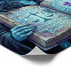 Dieses Fantasy-Plakat zeigt eine verzauberte Hexe mit Rabe und leuchtendem Zauberbuch, mystische blaue Waldkunst, magische Runen, Kristallsigil und Fantasy-Gothic-Vibes. Fertiggestellt in einem malerischen Öl-Acryl-Stil.