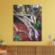 Diese Canvas-Printwerbung zeigt ein Originalfoto von ZoeSPEAK von einer Reinigung im Wald, am frühen Morgen. Es gibt Bäume, die nach einer Nacht starken Regens mit pastellfarbenen Lichen bedeckt sind, und der Boden ist mit roten Kiefernnadeln bedeckt.