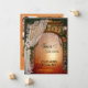 Save the Date Karte mit einem römischen Bogen mit Hochzeitsschleier, Rose und einer romantischen Laterne, die zu einem zauberhaften Wald führt. Auf der Rückseite ist Platz für Ihre eigenen Fotos. Wunderschön für eine geplante Garten- oder Waldfeier.