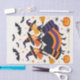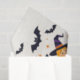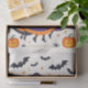 Ein festliches Trio lächelnder Hexen fliegt auf ihren Besen und stürzt sich gegen einen sternenvollen, von Fledermäusen erfüllten Nachthimmel. Sie sind in lebendiger Orange und lila gehalten und bilden eine wirklich bezaubernde Szene. Das grinsende Jack-o'-Laternen und die verspielten Spinnen runden dieses skurrile Design ab, das perfekt zum Umhüllen aller Halloween-Leckereien geeignet ist.