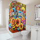 Dieser farbenfrohe Duschvorhang aus der Blume sagt "Vergib dir selbst!" darauf.