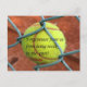 Ein Nahbild einer Tenniskugel, die in einem Metallgitter-Drahtzaun feststeckt. Dieses auffallende Bild wird verwendet, um die Botschaft des Zitats zu veranschaulichen, dass Vergebung sich frei macht, in unserer Vergangenheit festzustecken.