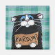 Whimsikkatze Kühlschrankmagnet. Schwarz-Weiß-Katze mit einem Pappschild mit Verzeihung? Er hat auch Baumwollwolle in den Ohren! Aus einem Originalgemälde 2008 entworfen, ist Lisa Marie Robinson