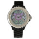 Mit Monogramm Uhr mit kunstgeschmückten Deko-Ziermustern in pastellfarben lila und grün.