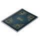 Eine Auswahl von Notebooks in hübschen Farben, einige in Imitat Leder und einige in Imitat Stoff. Verzierte Rahmen in Goldfarbe ergänzen die Frontabdeckung
