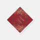 Machen Sie Ihren Hochzeitsempfang mit diesen schönen goldenen Servietten aus filigranem Gold schön. Die Vintage Blumengestaltung auf einem üppig marmorierten roten Hintergrund verleiht dem Haus elegante Schriftzeichen für die Namen des Ehepaares und einen Ort, an dem das Hochzeitsdatum eingegeben werden kann.