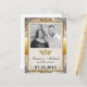 Verziertes Märchenbuch Hochzeit Speichern Sie das Datum Custom Foto Postcard Ankündigung. Mit königlichen Farben von Gold und Silber und Perlen. Diese klassische und raffinierte märchenhafte Hochzeit speichern Sie das Datum Postkarte ist ideal für jede thematische Hochzeit oder Krawatte. Mit dieser märchenhaften Hochzeitseinladung senden Sie Ihren Gästen eine Touch von Eleganz und Charme in vollkommenem Stil. Hat Imitate Perlen und Diamanten auf den Schnörkeln, die in den Ecken sind. Eine königliche Krone sitzt in der obersten Mitte mit Gold und Juwelen. Eine filigrane Abbildung sitzt auf einem Vintagen Hintergrund und ein verzierter Rahmen hält das verzierte Papier in der Mitte. Matching Produkte finden Sie in der Hochzeitsabteilung meines Ladens.