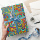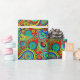 Farbenfrohe, fette Farbtöne im Retro-Stil der 70er Jahre, verziertes Blumenpaisley nahtlos. Türkisfarben rot-gelb und blau.