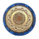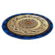 Ein verzierter Pessach Matzah Tray mit einem 3D-Fraktal Magen David (Star of David). Die Platte wird auf einem blau-farbenen Hintergrundbild mit mehreren Magens David überlagert. Hebräischer Text auf dem Teller lautet: "מ צ ה" (matzah) und "פ ח שס