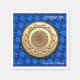 Ein verzierter Pessach Matzah Tray mit einem 3D-Fraktal Magen David (Star of David). Die Platte ist auf einem blauen Tischdecken mit mehreren Magens David überlagert. Hebräischer Text auf dem Teller lautet: "מ צ ה" (matzah) und "פ ח שס Sie können Ihren eigenen Text anpassen.