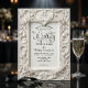 Setzen Sie mit diesem anspruchsvollen Design einen zeitlosen eleganten Rahmen für Ihr Black-Tie-Event, das mit einer klassischen monochromen Farbpalette und aufwendiger Scrollarbeit ausgestattet ist. Dieses Design zeigt eine hochauflösende digitale Darstellung eines aufwendigen, skulpturalen Rahmens, der von barocker und Rokoko-Kunst inspiriert ist. Die visuelle Komposition umfasst symmetrische Schwäne, die ein zentrales Herz-Motiv bilden, umgeben von geschwungenen Akanthusblättern und zarten floralen Reliefrosen. Die Farbpalette verwendet Töne von sanftem Weiß, Elfenbein, Creme und Hellgrau, um das Aussehen von geschnitztem Gips oder Stein zu simulieren. Die Typografie kombiniert eine fließende, romantische Kalligrafieschrift mit einer traditionellen Serifenschrift für maximale Lesbarkeit und Stil. Hierbei handelt es sich um ein fl