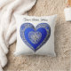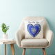 Fügen Sie Ihrem Dekor dieses romantische Kissen hinzu, das einen eleganten und farbenfrohen Zuhause-Akzent verleiht. Das Kopfkissen zeigt ein blaues Herz der Liebe mit verzierter, silbergrauer Dekoration. Die Rückseite des Kissens ist schlicht blau. Personalisieren Sie mit Ihrer eigenen Textauswahl, in Skripttypografie über dem Herzbild.