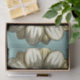 Verzierte Blumenmedaille über hellblauen Hintergru Seidenpapier