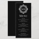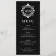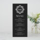 Verzierte florale Monogram Wedding Elegant Schwarz-weiß Menu beinhaltet Ihre personalisierten mit Monogramm Initialen in eleganter Schrifttyp-Schrift, umgeben von einem Zierrahmen mit Blumenmuster und eigenem Textüberlagern. Fügen Sie Ihrem Hochzeitsessen eine Touch Stil und Eleganz hinzu. Erstellt von Evco Studio www.zazzle.com/store/evcostudio